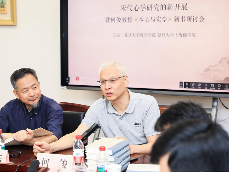 On August 16, 2025, the Symposium on New Developments in the Study of School of Mind of the Song Dynasty and Professor He Jun’s new work The Original Mind and Practical Learning was successfully held in Guanghua Tower at Fudan University, co-organized by the School of Philosophy Fudan University and the Shanghai Academy of Confucianism(上海儒学院). The symposium focused on Professor He Jun’s recent research on Lu Xiangshan’s Theory of Mind, with thirty scholars from universities and research institutions across China in attendance. Participants held in-depth discussions on major issues such as the historical positioning of Lu Xiangshan’s School of Mind, the Debate between the theory of Zhu Xi and that of Lu Jiuyuan(朱陆之辩), and the intellectual lineage of Mencius thought(孟子学渊源), offering valuable insights for the further studies on the study of the School of Mind of the Song Dynasty.
